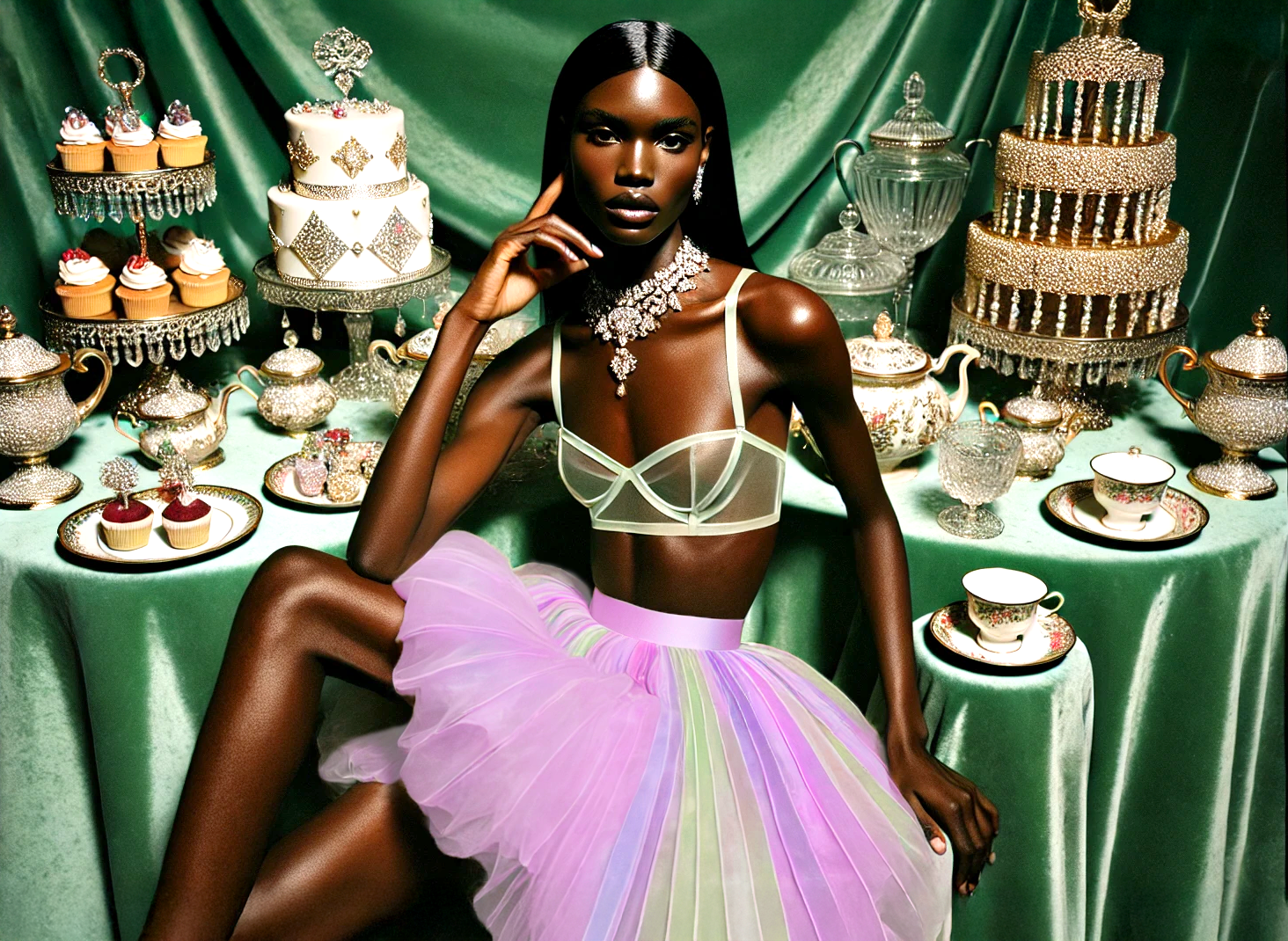 Striking and statuesque against the opulent backdrop, Zara embodies high fashion's edgy sophistication. Her angular features and cool gaze create an androgynous allure that's both mysterious and commanding. She's the kind of presence that stops conversations when she enters a room.